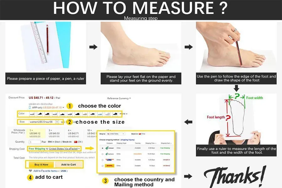 Check the size of the shoes before buying, measure the length that suits you, and then choose the shoes to buy